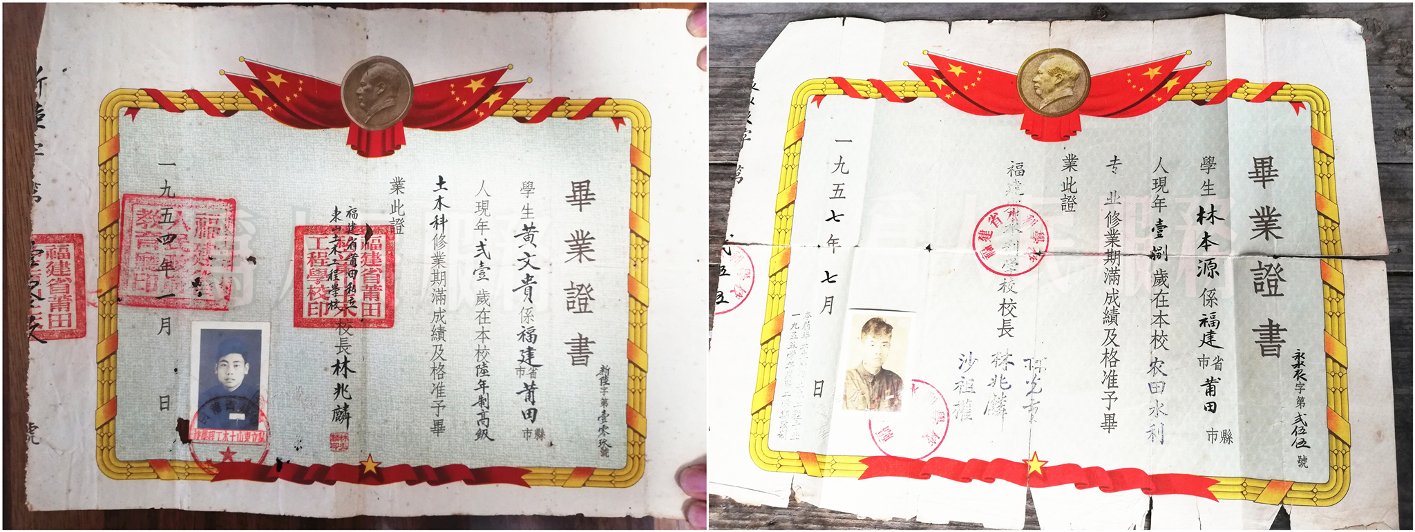 老校友黄文贵、林本源将50年代毕业证书赠送母校