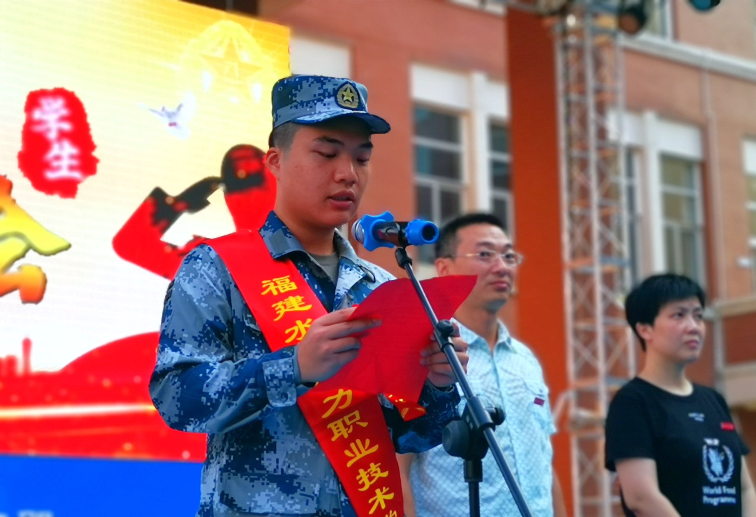 水利1631班林兆民同学代表全体入伍新兵发言,他感谢学院的培养与信任,感谢父母家人的关爱,希望自己能够通过入伍参军成长为一名合格的优秀士兵,为国防事业做出贡献,为母校争光,不辜负家人及学院的期望。会计1831班林志超同学代表全体学员退伍大学生发言,他表达了参军两年来的成长和对自己学业及社会交往等方面的帮助,鼓励并祝福新战友们勇往直前,一路平安。