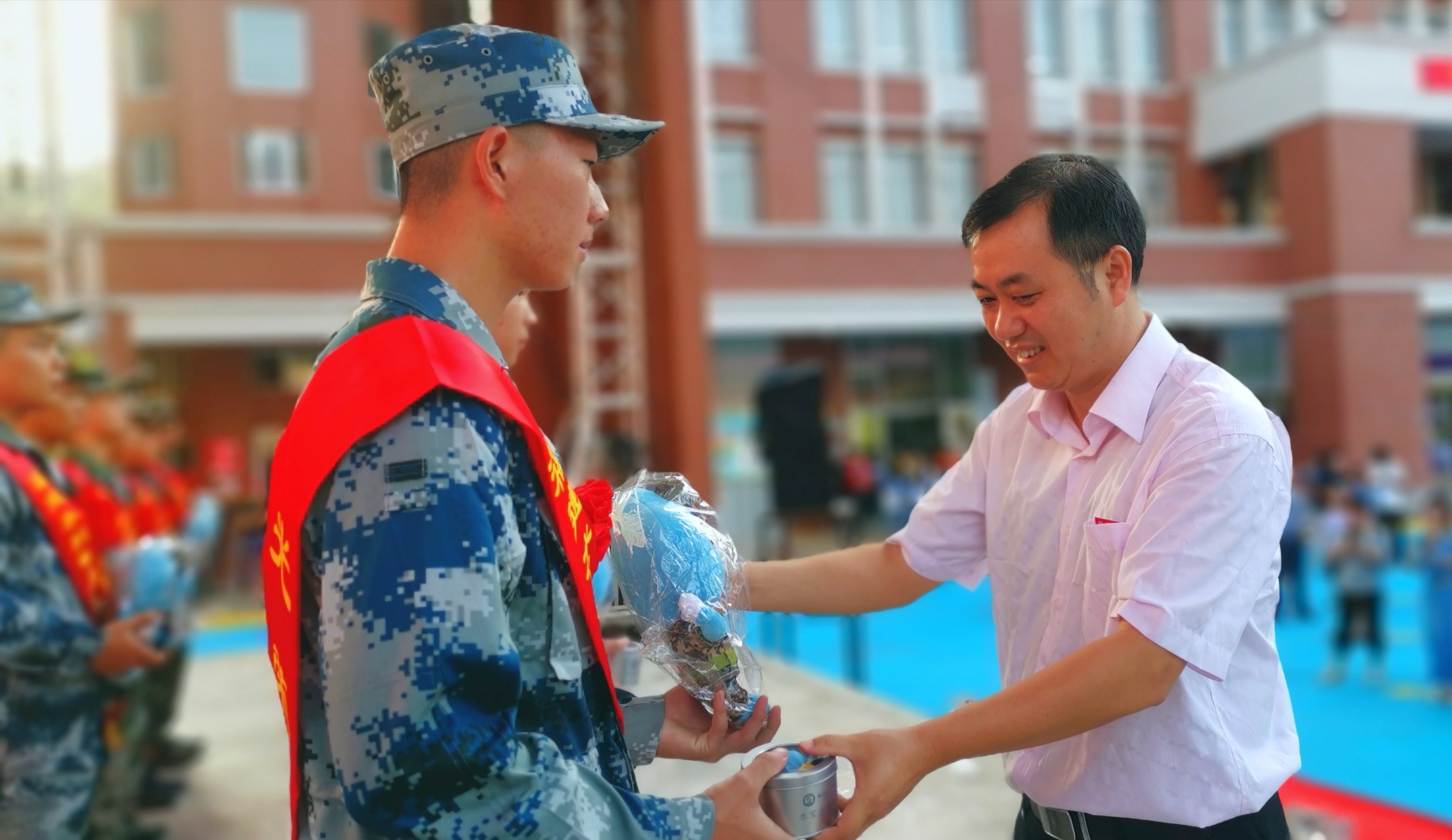 随后,杨武盖代表学院全体师生向积极报名、携笔从戎的全体新兵们表示热烈的祝贺,并为每位入伍学生颁发了纪念品。同时,他对即将踏上征程的入伍同生提出了三点希望:一是要坚定信念,克服困难,尽快适应部队生活。二是要加强学习,苦练技能,不断提高政治军事素质。三是要严守纪律,忠于职守,成为一名优秀军人。