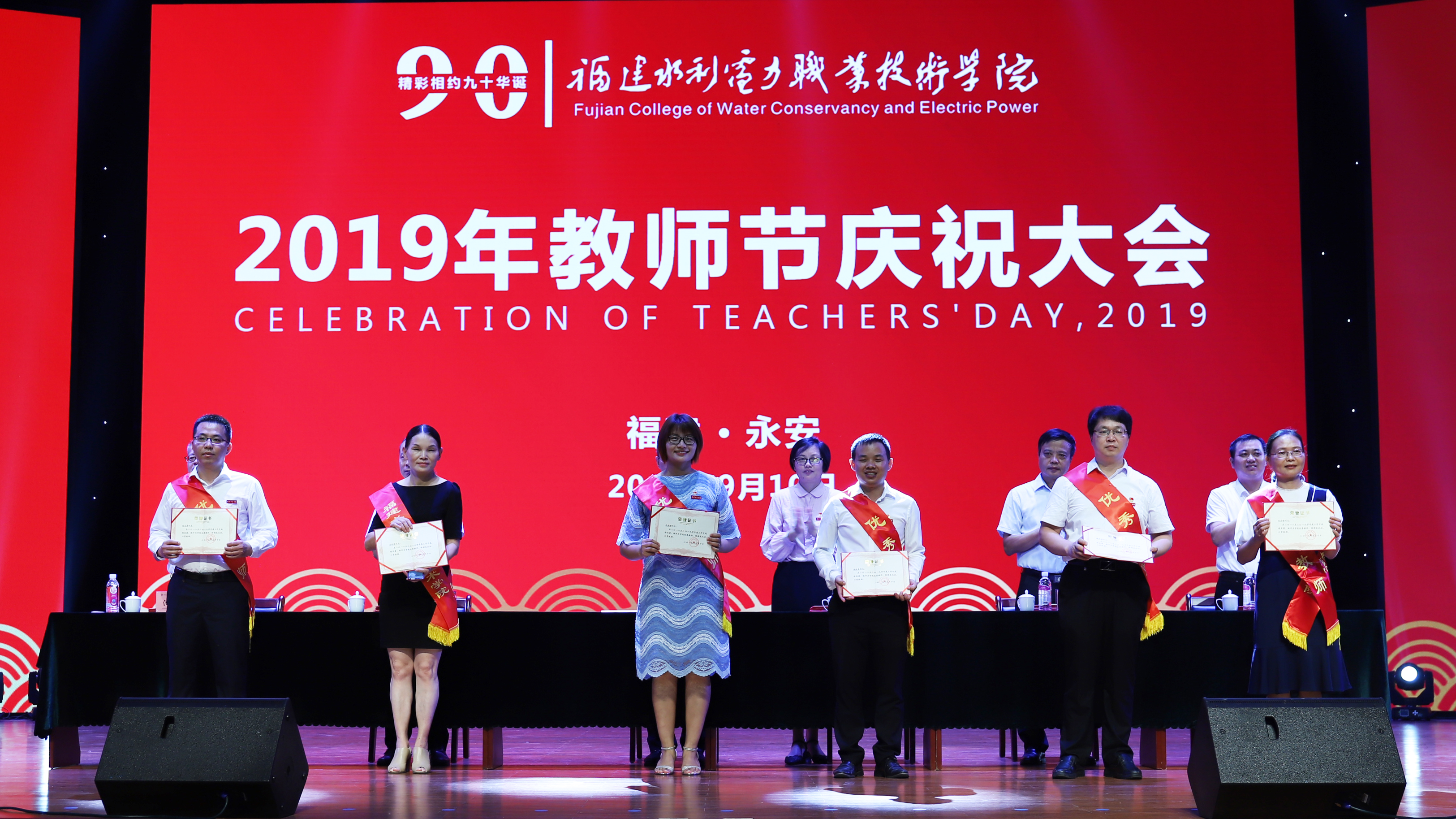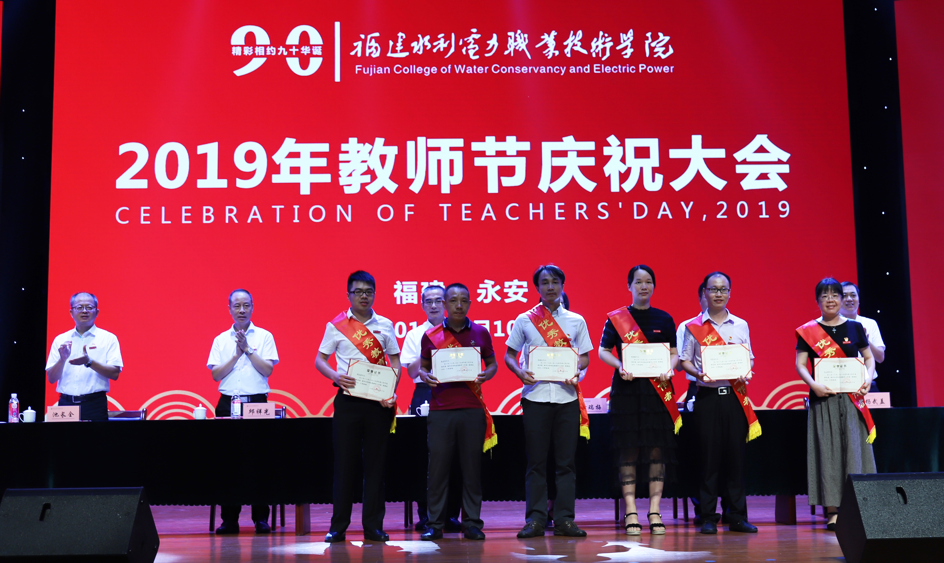 大会在雄壮的国歌声中拉开帷幕。池长全宣读了学院关于颁发从教荣誉证书的决定,关于表彰2018~2019学年度“优秀教师”“优秀教育工作者”“最美教师”的决定,与会领导分别为受表彰教师颁奖。