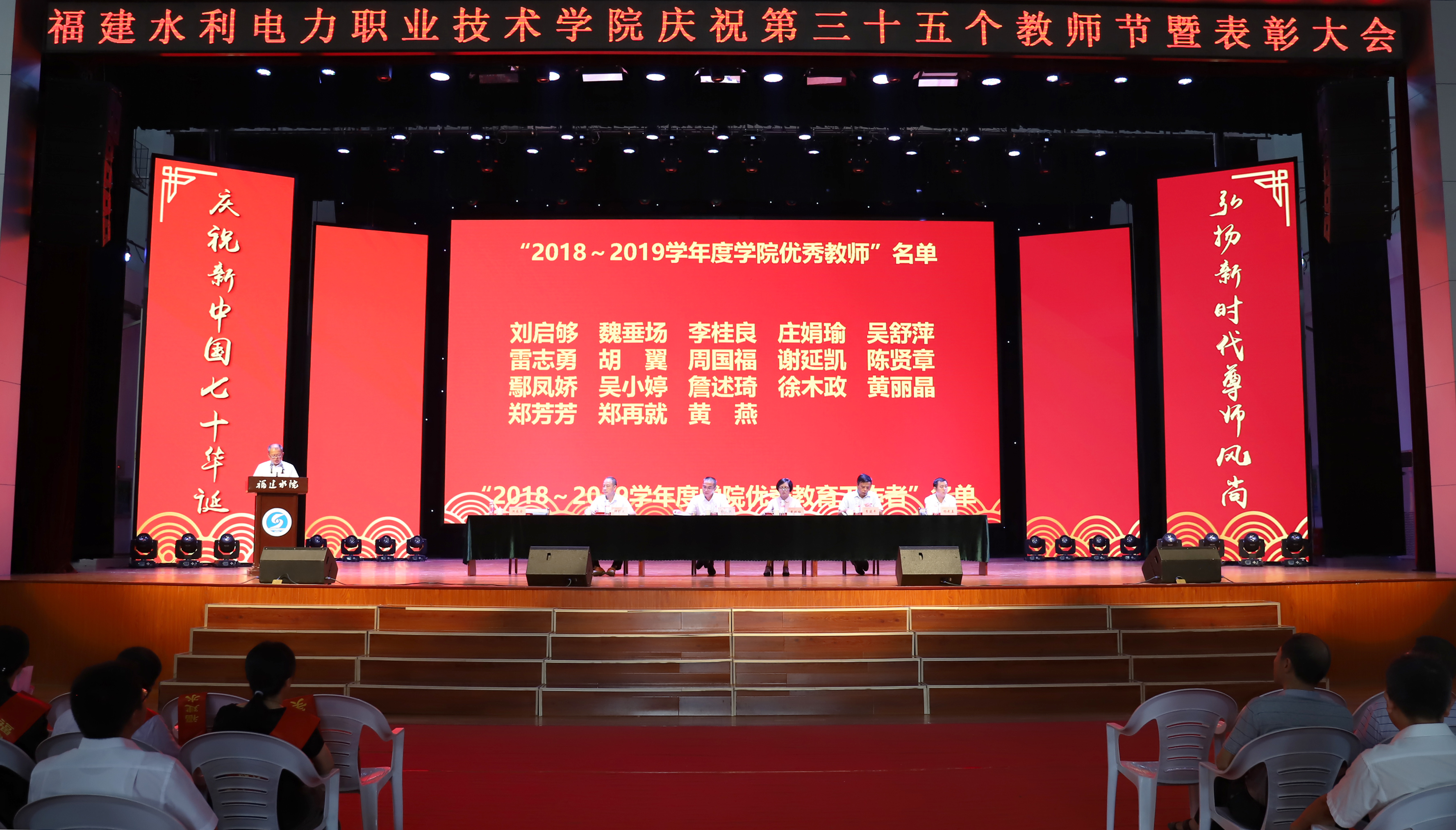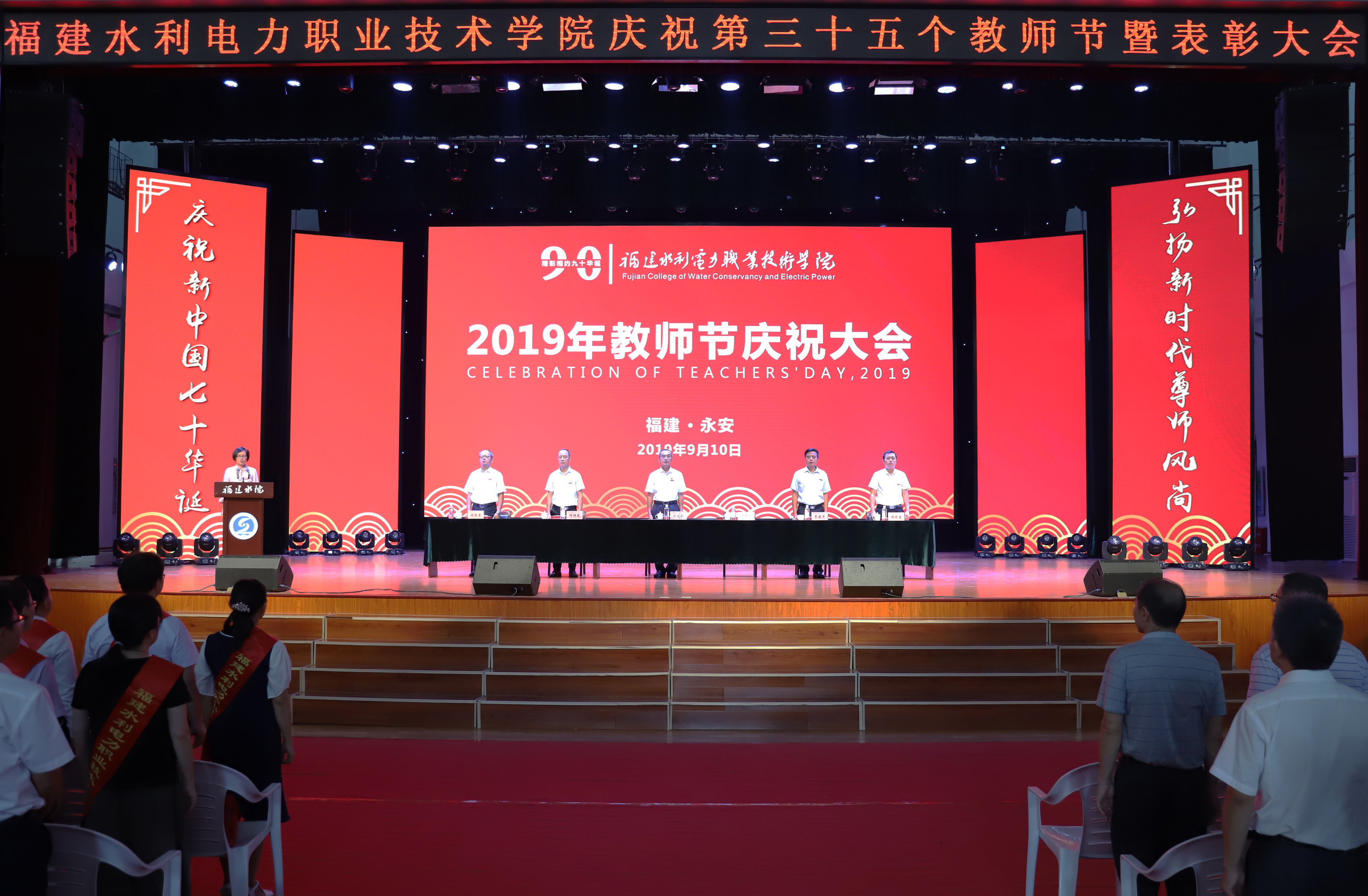 9月10日下午,我院在路港体育馆隆重举行2019年教师节庆祝大会,全校师生共同庆祝第35个教师节。院长杨元挺,党委副书记黄瑞梅,纪委书记邱祥光,副院长李建平、池长全、杨武盖出席庆祝大会。大会由党委副书记黄瑞梅主持。