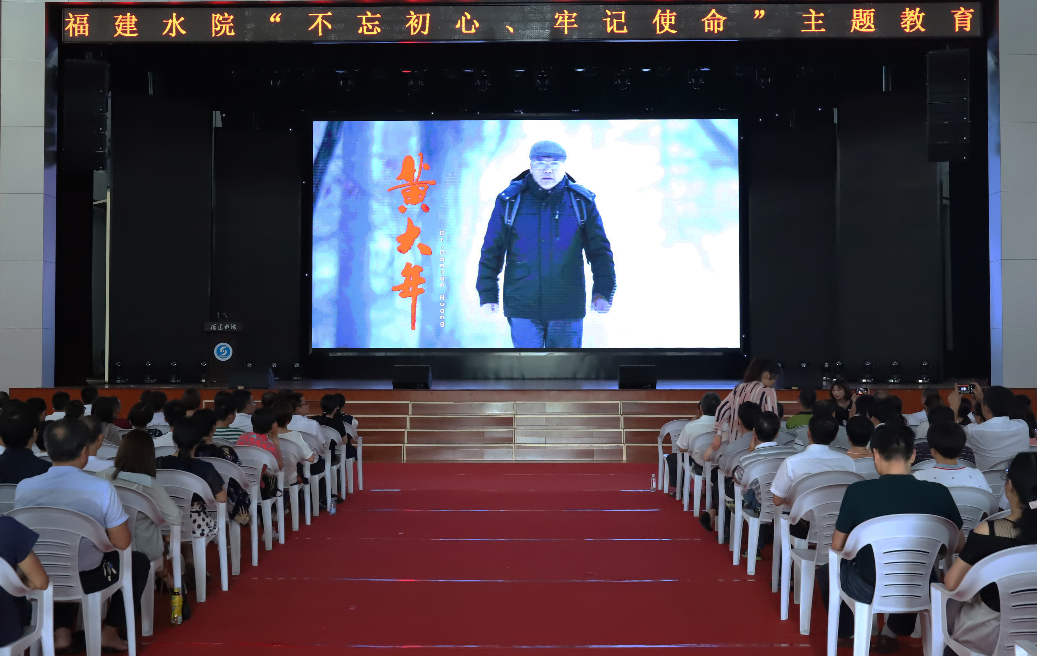 庆祝大会结束后,学院还结合“不忘初心、牢记使命”主题教育,组织全体教职工观看电影故事片《黄大年》,学习“时代楷模”黄大年同志先进事迹。