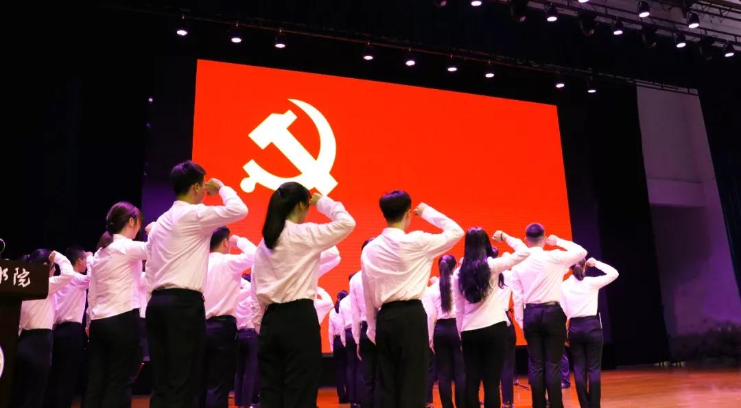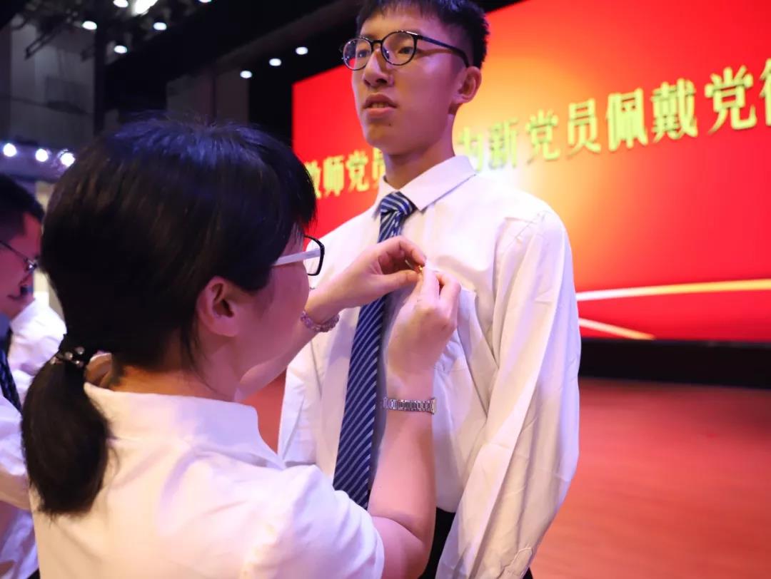 宣誓仪式在激昂的《国际歌》声中拉开序幕,党委副书记黄瑞梅同志宣读了学院党委审批通过的88名新党员名单,并代表学院党委向新党员表示衷心的祝贺。随后,各系教师党员代表依次上台为新党员佩戴了党徽。