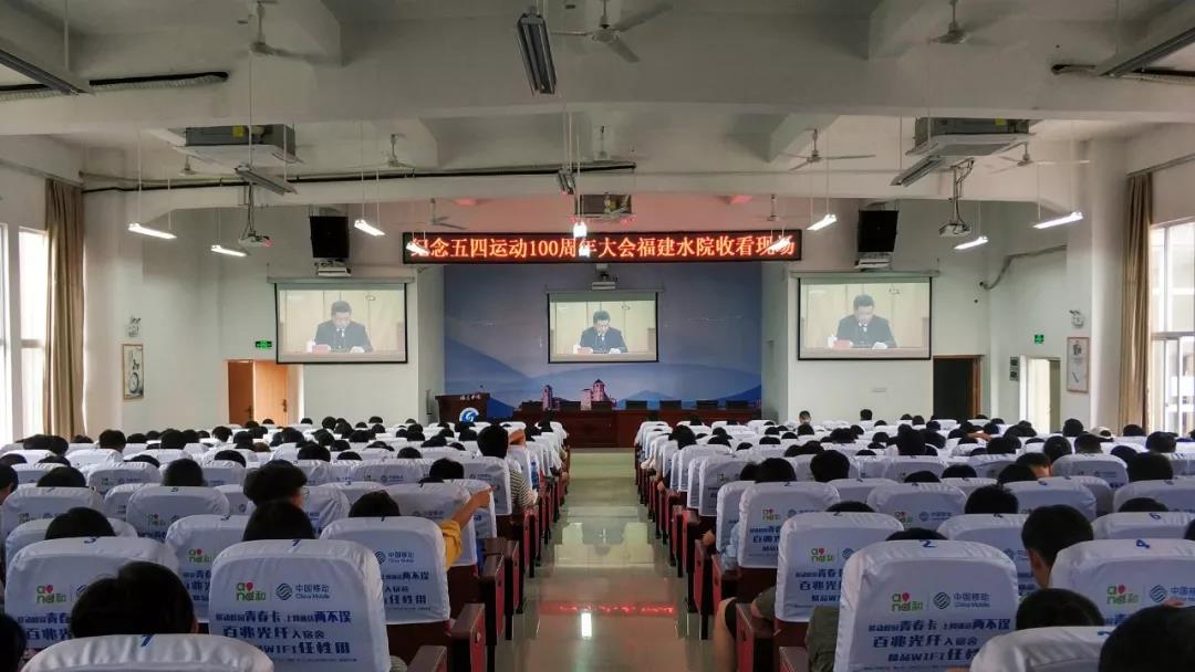2019年4月30日上午10:30,纪念五四运动100周年大会在北京召开,中央广播电视总台对全程进行现场直播。福建水利电力职业技术学院团委、马克思主义学院、各系部团总支书记、全体专职辅导员、教工团支部、团干代表及团员学生共计350人在学术报告厅一同收看了大会直播。