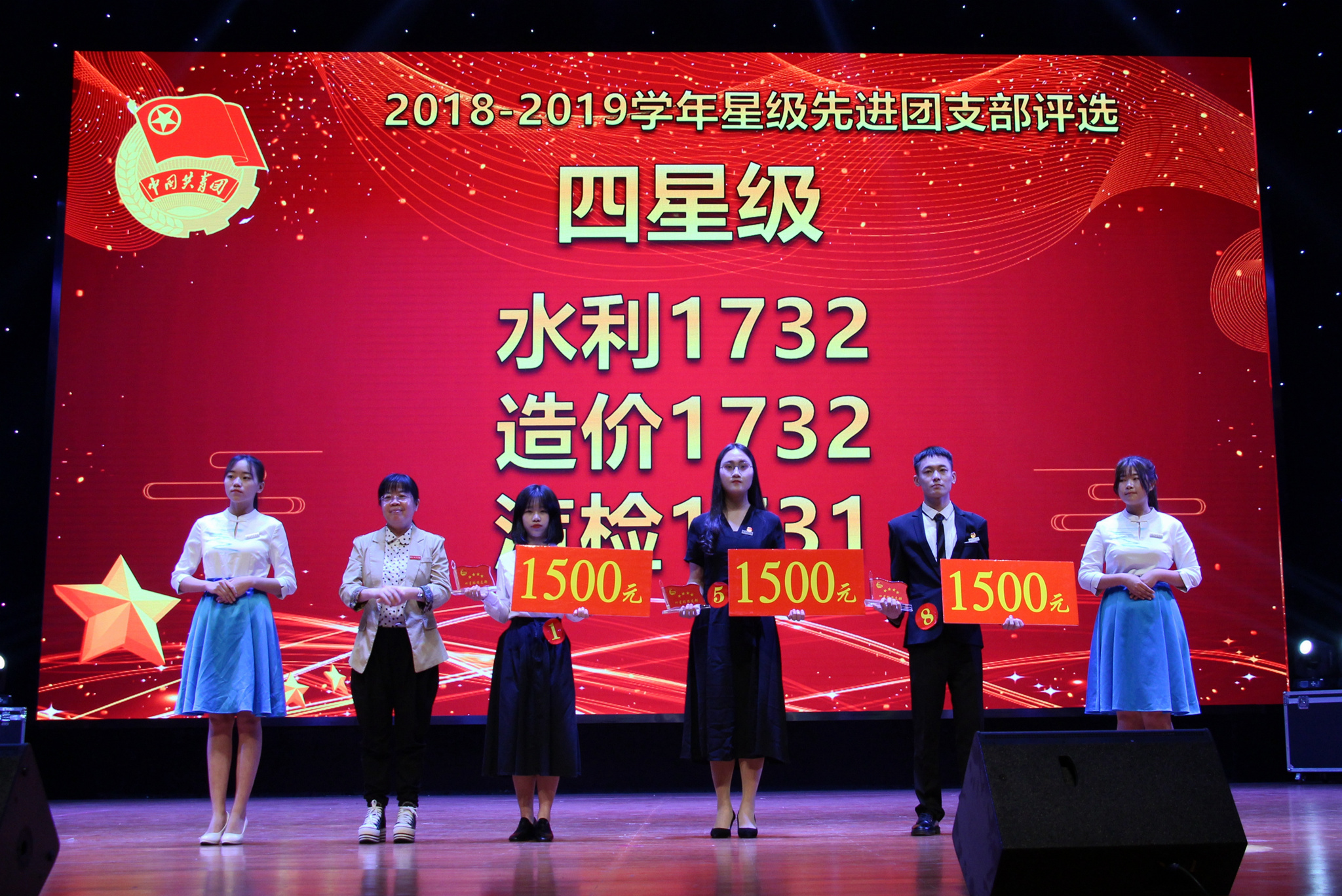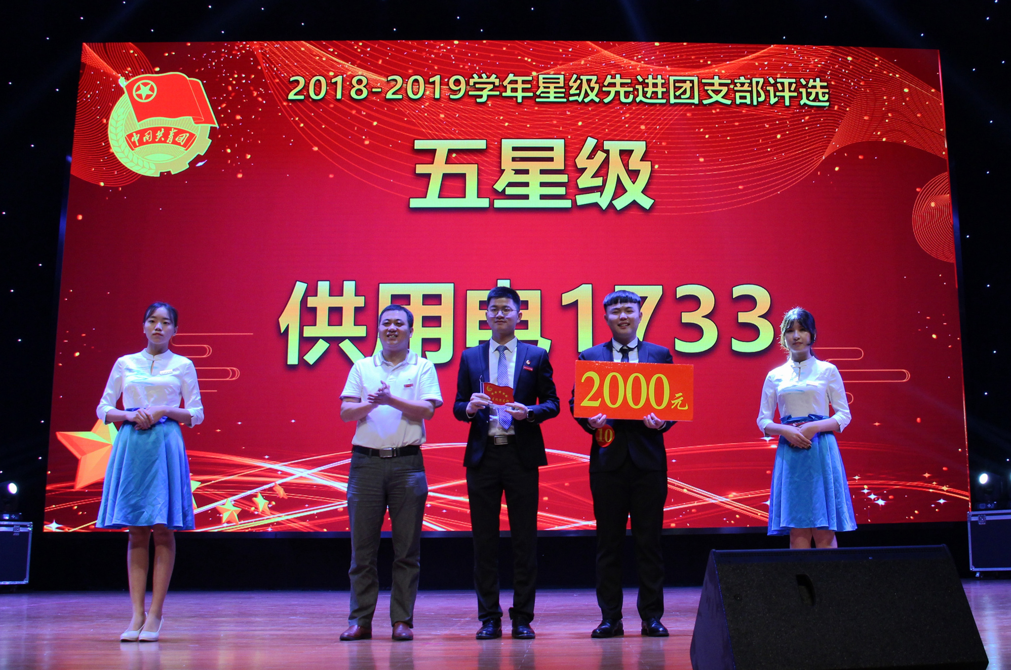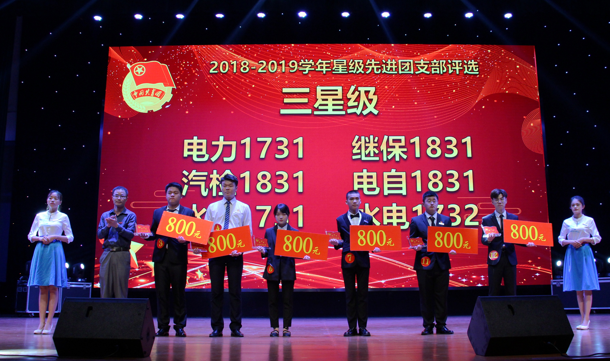纪念大会结束后,进行了学院第八届星级先进团支部评选。本届星级团支部创建评选经过近百个团支部的预赛和复赛, 12个团支部进入星级团支部的争夺。最终,来自电力工程系供用电1733班夺得“五星级团支部”桂冠,水利1732班、造价1732班、汽检1731班荣获“四星级团支部”,电力1731班、汽检1831班、水利1731班、继保1831班、电自1831班、水电1732班荣获“三星级团支部”。经过前期成果展示,通过微信和易班网络投票评选,水电1732班、电力1731班荣获“最具人气奖”,水电1851班、电商1732班获“入围奖”。