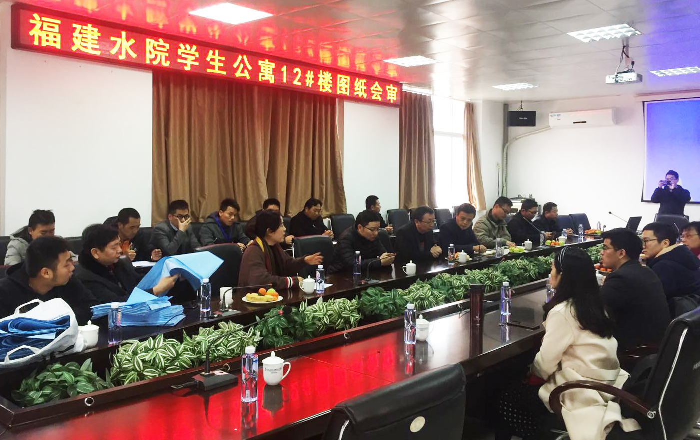 为加快推进福建水利电力职业技术学院学生公寓12号楼建设,2月22日上午,学院召开学生公寓图纸会审会议。学院副院长李建平,后勤管理处、现代教育技术中心、建筑工程系等相关人员,永安市城乡住房建设与规划局规划科、永安市城乡住房建设与规划局建筑业科、永安市档案馆、永安市建设工程安全质量监督站、施工单位、勘察单位、设计单位、监理单位等相关人员参加了会议。