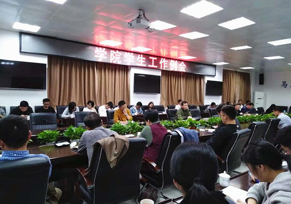12月3日下午,十二月份学生工作例会在禹兴园1-506召开。学院副院长杨武盖,学生工作处全体成员、保卫处、后勤处、各系党团总支负责人及全院专职辅导员参加了会议。