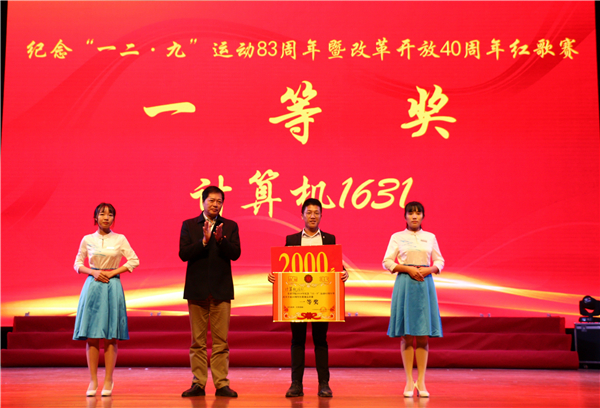 嘹亮的歌声,点燃清冷夜色;深情的告白,抒发时代豪情。经过各系部预赛,最终脱颖而出的14支队伍进入决赛。比赛中,各班级的辅导员也上场与同学们共同演绎红歌的魅力。经过激烈角逐,来自计算机1631班的《军歌嘹亮向太阳》摘得桂冠,张颖、高伟达两位同学获得本次比赛的优秀指挥。