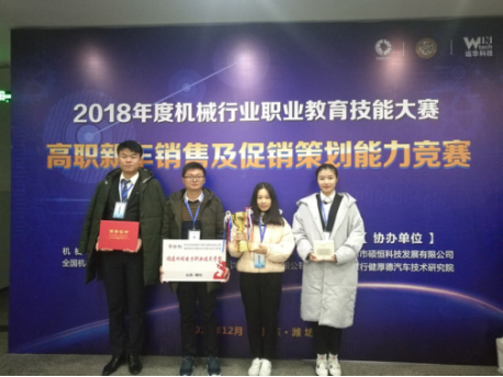 12月9日,2018年度机械行业职业教育技能大赛——高职新车销售及促销策划能力竞赛在山东交通职业学院落下帷幕,我院由机电工程系林雨姗、罗华翔、潘伟伟、张瑞芬老师指导的张豹、李佳婧两位同学,在比赛中发挥出色,取得二等奖的好成绩。