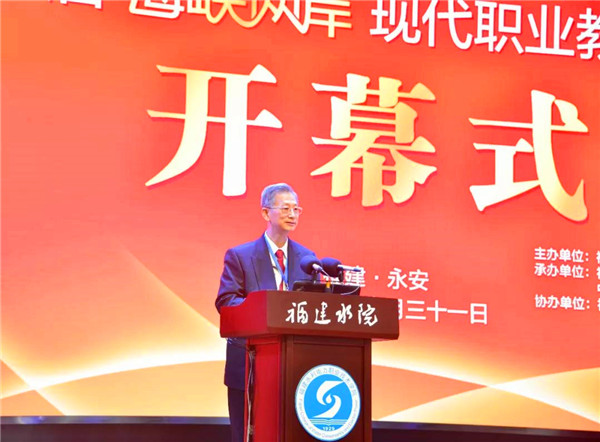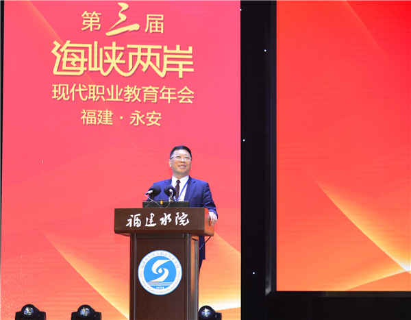 福建省教育厅副厅长陈国龙在年会上致辞。他指出,两岸同胞一家亲,有着共同的血脉、共同的文化、共同的愿景,开展两岸教育交流与合作时间早、形式多、领域广、规模大。近年来,职业教育强调特色办学与产教融合、创新校企合作模式,依托互联网信息技术创新教学新模式,运用大数据提升学校管理能力,已是职业教育改革发展的新趋势。他希望两岸职业院校进一步携起手来,顺应潮流,加强合作,推动应用技术型人才的培养,助力“新福建”的建设,并期待能通过本届年会的共同研讨,能在产教融合、新兴学科专业对接、师资联合培训等方面促进深度合作和融合。