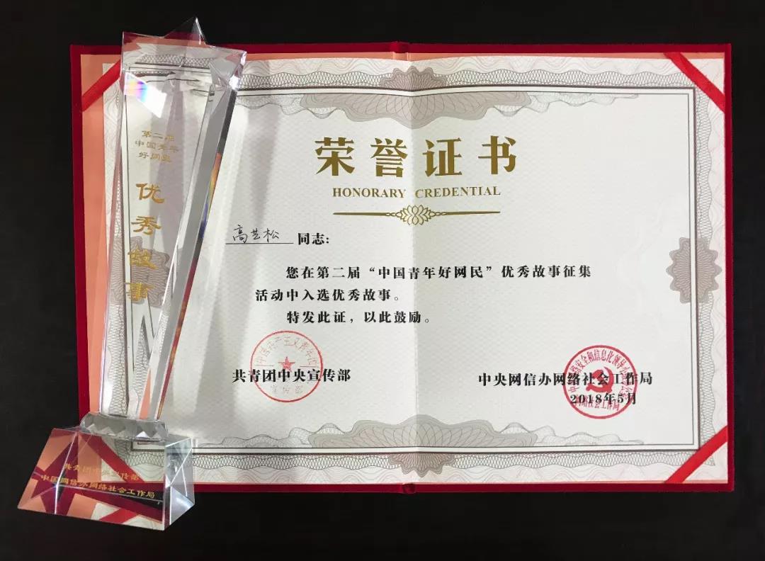 日前,由共青团中央、中央网信办联合举办的第二届“中国青年好网民”优秀故事揭晓,经过网络自荐、组织推荐、网友点赞、专家评审等环节,从全国征集的1400余个故事中,共选出在网络上大力传播正能量、开展公益慈善活动、参与网络治理及安全维护、编创优秀网络文化产品、普及网络素养512个故事进入网友点赞和专家评审环节,5个类别100个故事最终成功入选。其中,我院高艺松老师的故事入选“中国青年好网民”优秀故事。