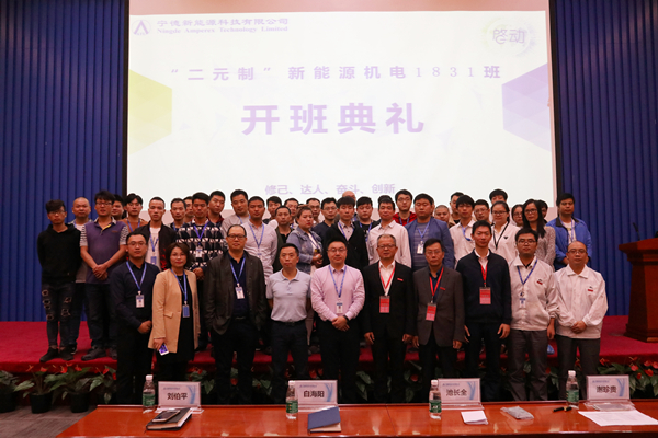 10月18日,我院机电工程系与宁德新能源科技有限公司(ATL)举行了“二元制”技术技能人才培养模式改革试点——新能源机电1831班开班典礼。学院副院长池长全、机电工程系主任谢珍贵、宁德新能源科技有限公司生产经理白海阳、刘伯平、人资经理林巍然等出席了开班典礼。