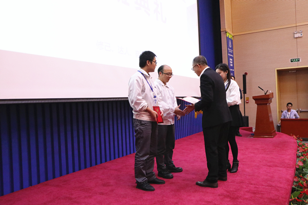随后,池长全为宁德新能源科技有限公司两位外聘教师颁发聘书并佩戴校徽。谢珍贵老师为校企项目负责人黄帆、黄斌颁发班主任聘书。