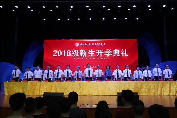 9月3日上午,福建水利电力职业技术学院2018级新生开学典礼在路港体育教学馆隆重举行。学院党委书记庄伟廉,院长杨元挺,福建水利学会副秘书长陈泽曦,学院党委副书记黄瑞梅,副院长李建平、池长全、杨武盖,各系主任及相关部门负责人出席了典礼。首批来自五湖四海的2500余名新生汇聚一堂,开启崭新的大学生涯。开学典礼由杨武盖主持。