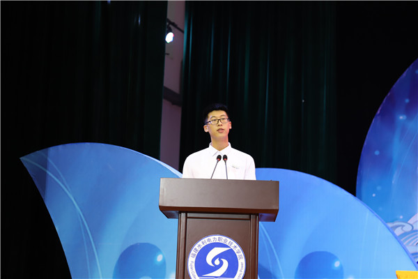 供用电1632班的郭英艺同学代表在校生对2018级新同学的到来表示欢迎和祝贺,作为学长他呼吁同学们要恪守“精求技能、崇尚文明”的校训精神,鼓舞同学们带着信心、勇气和毅力来迎接大学的风雨洗礼。水电1832班的郑杰梁同学代表新生表达了对大学生活的憧憬和向往,表示将在今后的大学生活中塑造最好的自己,为福建水院争光添彩。