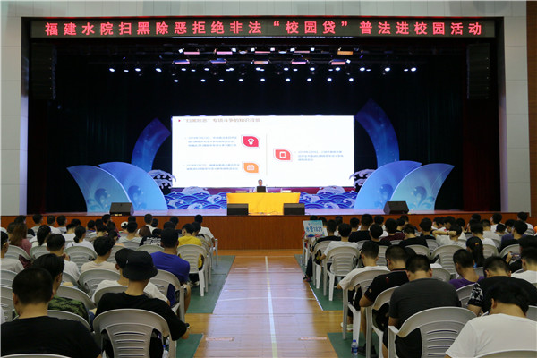 9月6日下午,由三明市教育局、三明市中级人民法院和福建水利电力职业技术学院联合开展的扫黑除恶、拒绝非法“校园贷”普法进校园宣讲活动在我院成功举办。学院副院长李建平出席宣讲活动,活动由学工处副处长陈燕晖主持,全院师生代表共2500余人到场聆听。