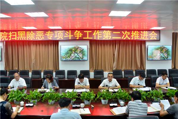 杨院长在会议上提出四点要求:一是扫黑除恶是巡视内容之一,各个部门要落实到位,责任到人;二是扫黑除恶要上升到政治高度,讲政治、讲规矩;三是扫黑除恶不是临时性活动,是长期性的,要认真学习贯彻习近平新时代中国特色社会主义思想,做好长期斗争的准备;四是扫黑除恶开展不好要进行责任追究,各个部门负责人要加强学习、认真部署、落实到位、坚决执行。