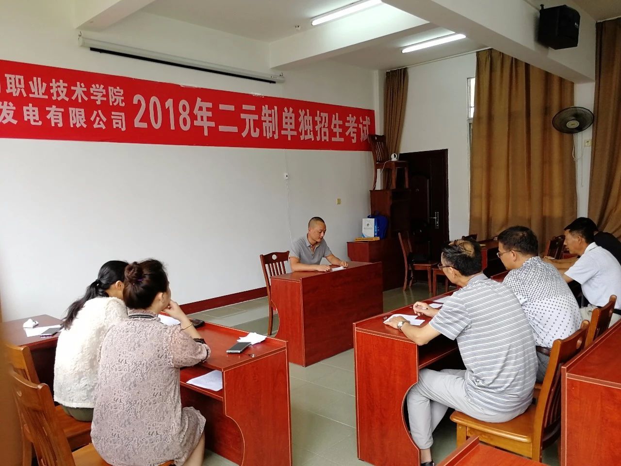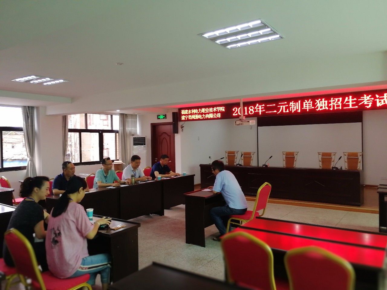 6月22日至23日,电力工程系开展2018年“二元制”技术技能人才培养模式改革试点单独招生考试,共有108名考生到场参加考试,招生对象分别为福建省电力企业协会、联盛纸业有限公司、三明建宁县闽源电力有限公司、南平邵武市金岭发电有限公司等四家企业签订劳动合同的员工。