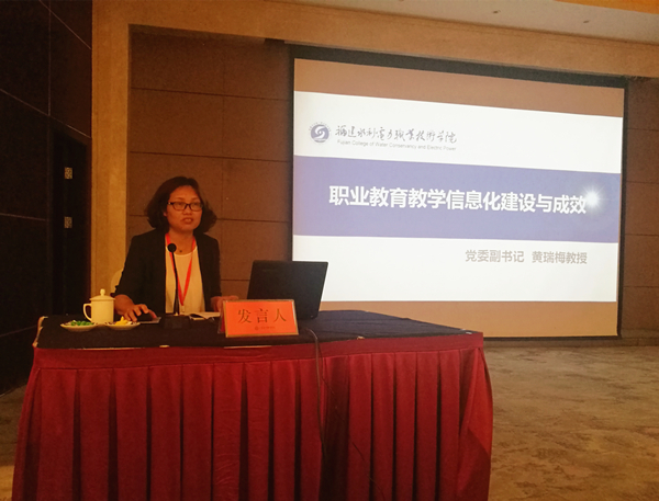 会上,黄河水院、杨凌职院、山东水院等7所院校分别就水利职业院校教育教学信息化、技能导师工作等专题进行了经验交流。黄瑞梅教授代表我院作了题为《职业教育教学信息化建设与成效》的专题分享,她指出学院高度重视并有效推进教育教学信息化建设工作,同时用“三高(高标准,高规格,高投入)、四促进”概括了学院近年来在教育教学信息化的做法和成效。