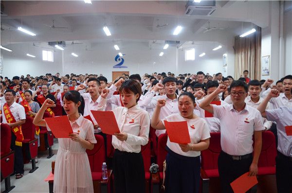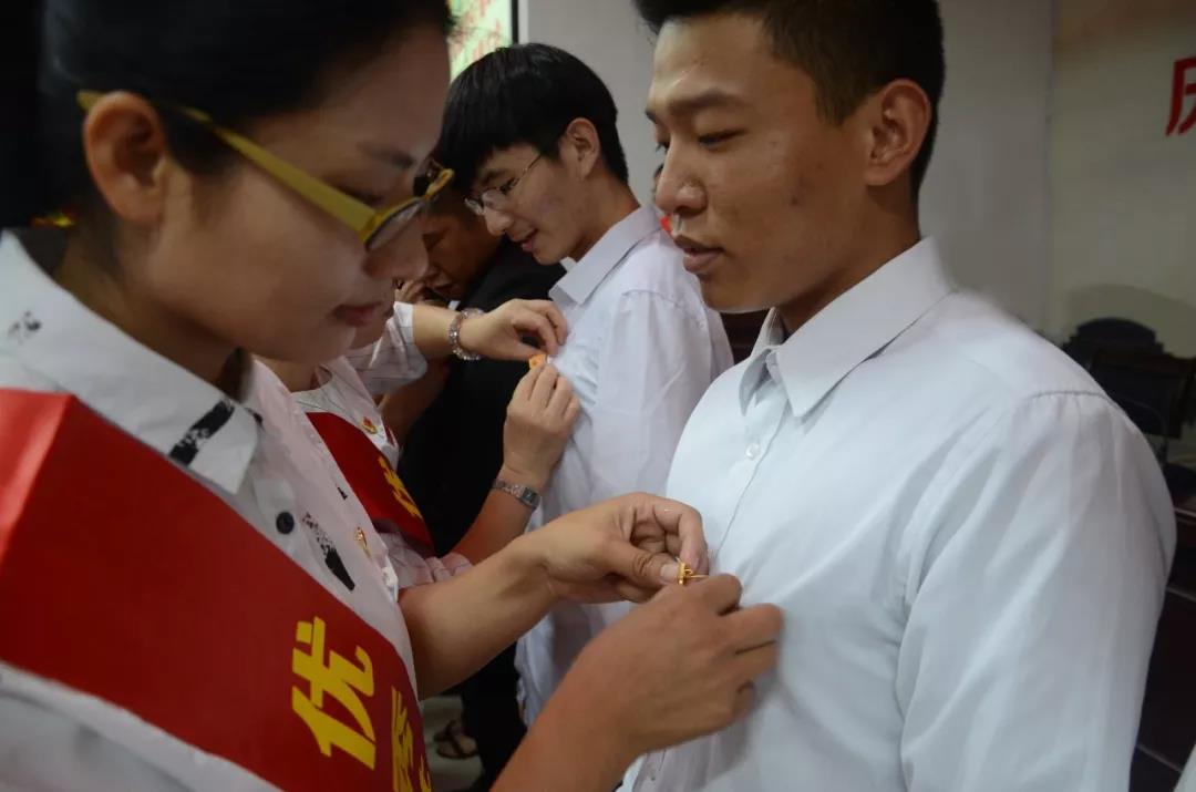 会上,受表彰的优秀共产党员、优秀党务工作者、优秀党支部书记们还为2018年6月份新加入党组织的72名预备党员佩戴了党徽,寄予殷切希望,传递共产党员的理想信念。
