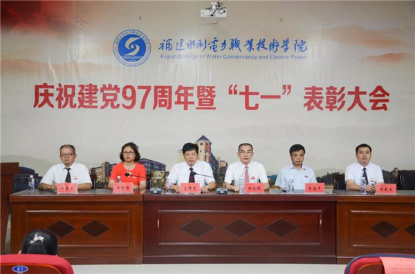 为重温党的光辉奋斗历程,讴歌党的卓越历史贡献,充分发挥先进典型的示范作用,凝心聚力共谋学院发展,7月1日下午,学院庆祝建党97周年暨“七一”表彰大会在学术报告厅隆重举行。全体党政领导班子出席会议。大会由党委副书记黄瑞梅主持。