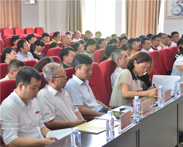 7月6日上午,学院召开2017-2018学年院领导班子和领导干部年度考核工作会议。根据省教育厅党组的统一安排,省教育厅党组成员、副厅长,省委教育工委员李迅等一行四人对我院领导班子和领导干部进行考核。学院领导班子成员、中层干部和高级职称专业技术人员等82位同志参加了大会。大会由院党委书记庄伟廉主持。