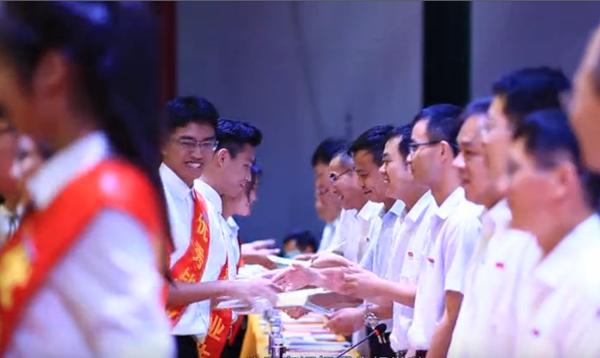 (主席台领导为毕业生依次颁发各类证书)