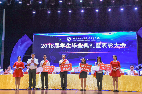 党委副书记黄瑞梅宣读了2018届优秀毕业生表彰决定、2018届新时代技术能手表彰决定及2017年国家奖学金表彰决定。主席台领导分批次颁发了优秀毕业生荣誉证书、国家奖学金荣誉证书,庄伟廉书记颁发了2017年国家奖学金荣誉证书及奖金。最后,杨元挺院长依次为每一位优秀毕业生颁发了毕业证书并合影留念。
