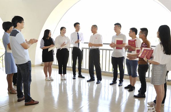 三年师生情终生缅于怀,学子闯天下母校候佳音。近日,八位参加2017年全国大学生数学建模竞赛获奖的毕业生手捧着获奖证书和嘉奖令,带着无比激动的心情,与学院院长杨元挺亲切谈话并合影。