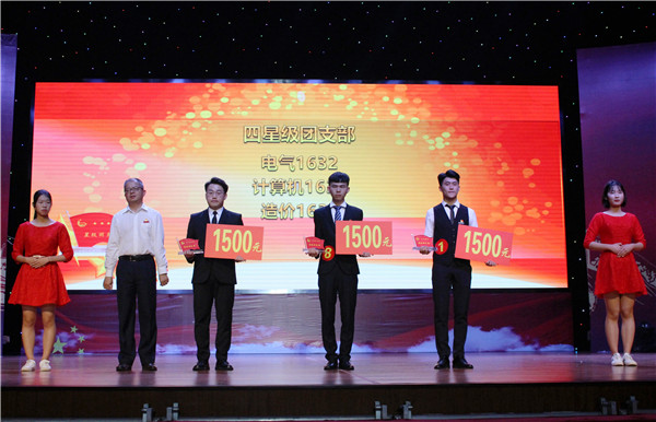 表彰结束后,进行了星级团支部创建评选。本届星级团支部创建评选得到了全院五系近百个团支部积极响应,经过各系预赛,12个团支部脱颖而出。最终,来自电力工程系供用电1632班“轨道型”团支部摘取“五星级”桂冠,电气1632班、计算机1631班荣获“四星级”先进团支部,水管1631班、水管1632班、建筑1721班、电自1631班、水电1732班、电力1731班荣获“三星级”先进团支部。同时,电气1632班团支部经过现场大众评选团投票荣获“最佳风采展示奖”,水电1732班、电力1731班“荣获最佳人气奖”,造价1731班、汽检1731班获入围奖。