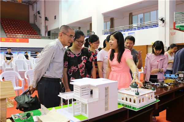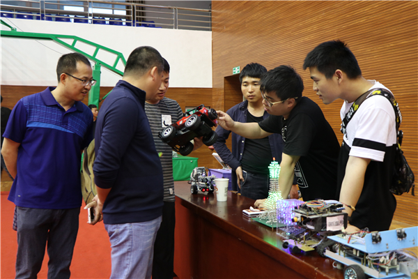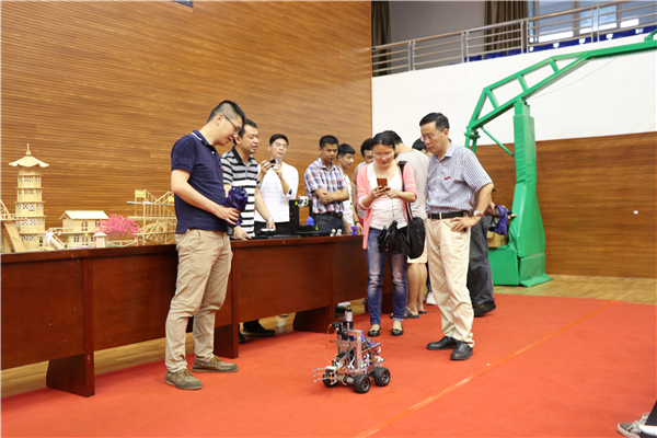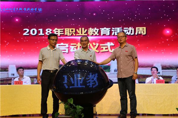 杨元挺、李建平和池长全一同为本次活动开启了“职业教育活动周”启动球。仪式后,师生们在现场参观了学院建设成果展,包括教学成果、师生技能及科技成果展示,有无人机巡线、测绘、智能浇花系统、VR技术、建筑模型展和移动机器人等,为启动仪式增添一缕光彩。