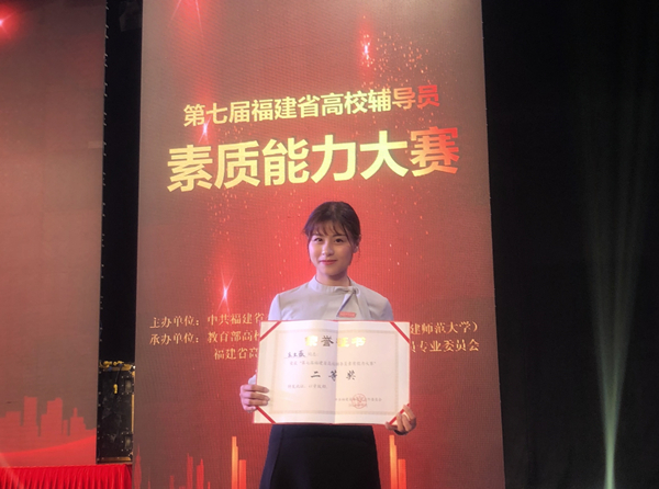 5月7日至8日,第七届全省高校辅导员素质能力大赛在福建师范大学举行,来自全省本科、高职院校共76名选手同场竞技。我院辅导员庄立薇凭借扎实的理论功底、过硬的职业素养和丰富的学生工作经验荣获大赛二等奖的佳绩,成为场上高职院校辅导员中唯一获二等奖的选手,这也是我院自参赛以来的最佳成绩。