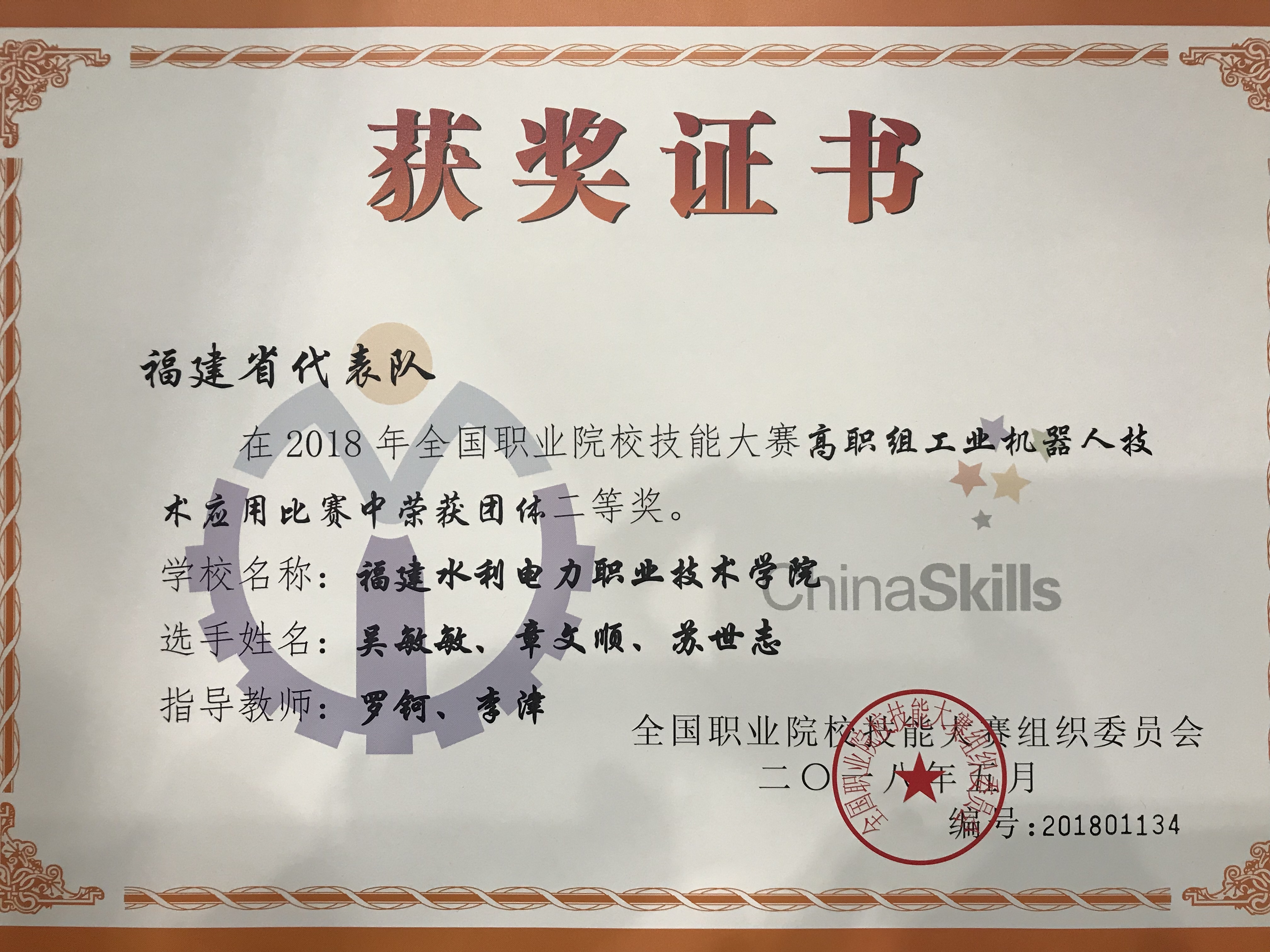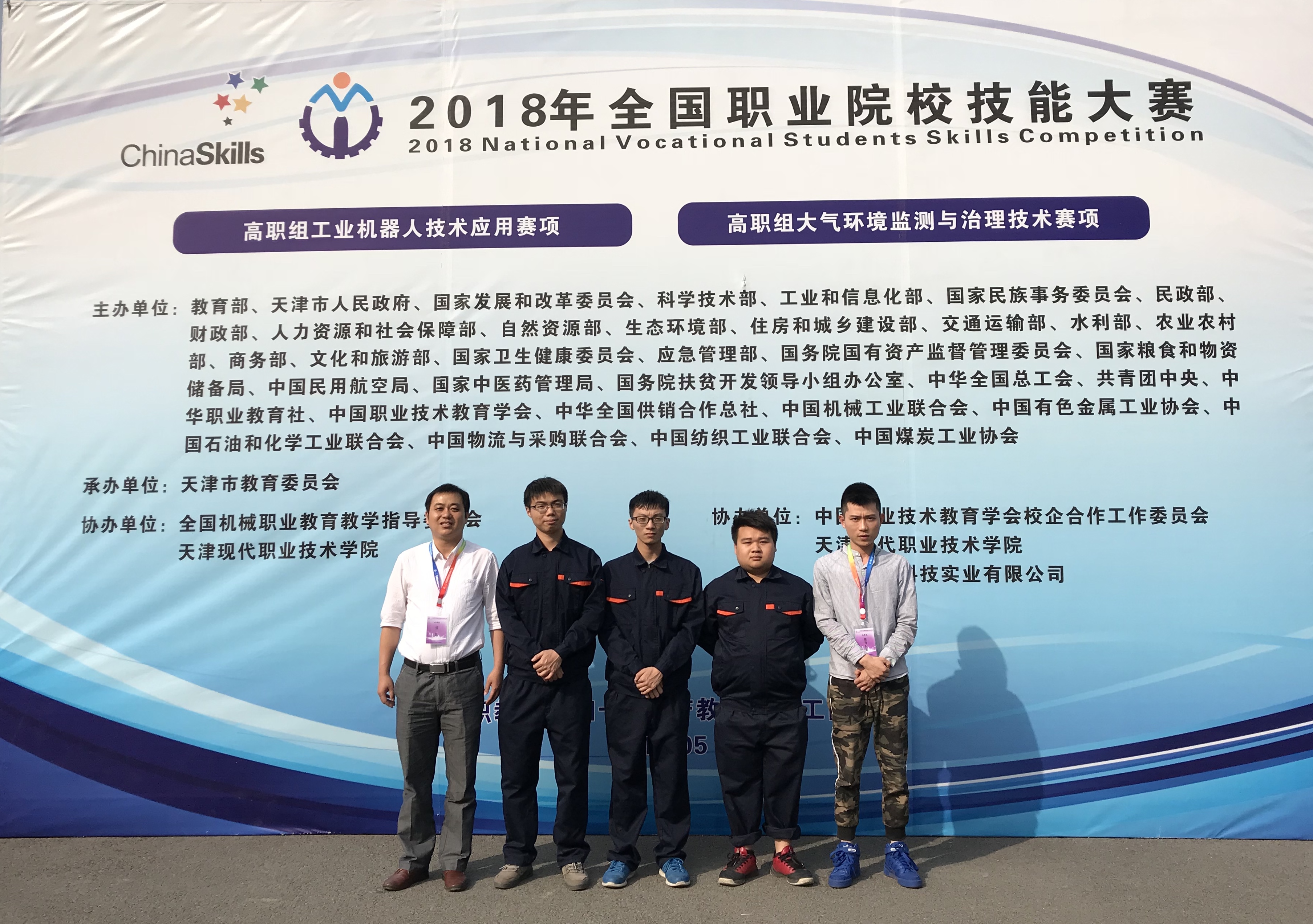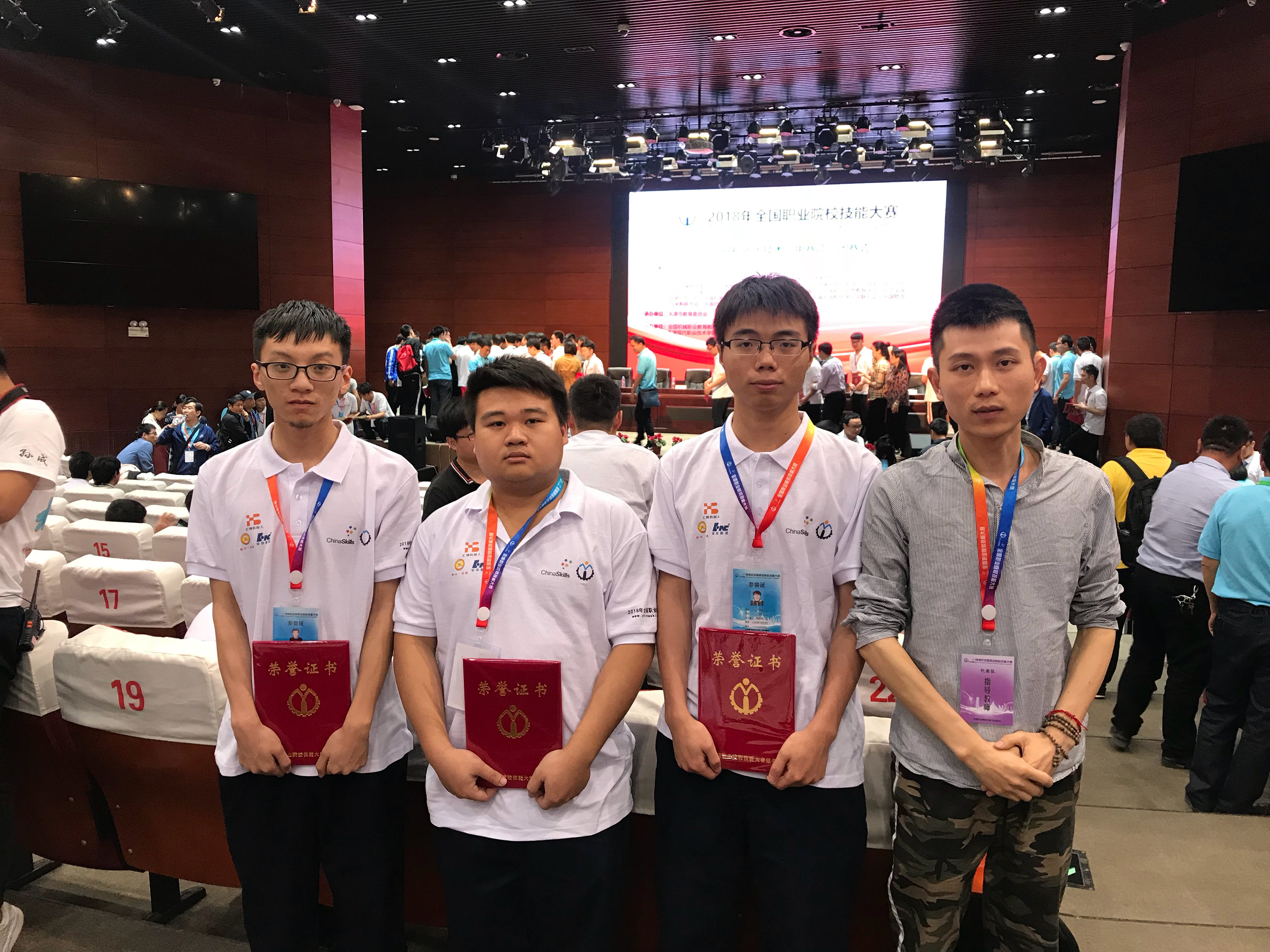 5月5日至8日,2018年全国职业院校技能大赛高职组“工业机器人技术应用”项目在天津现代职业技术学院举行,来自全国各省市共76支代表队参加了该项竞赛。我院副院长杨武盖作为本赛项福建省领队,带领三支代表队参赛。经过3天的激烈角逐,我院机电工程系的章文顺、苏世志、吴敏敏三位同学在罗钶、李津两位老师的精心指导下喜获团体二等奖。