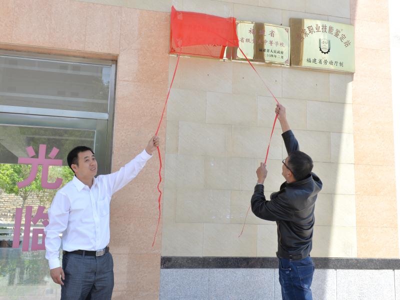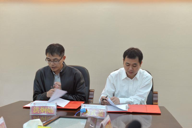 杨武盖与洪炯灿分别代表双方学校签字,并为教学实训基地揭牌。南安工业学校较为完善的汽车检修实训条件将为我院汽检专业学生提供较好的专业技能训练场所。