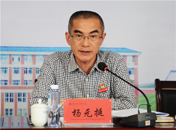 最后,杨元挺对各部门和全体教职工提出了增强三全育人自觉的要求,号召全体教职工不忘初心,牢记使命,在奋斗者的新时代,以滴水穿石之毅力,以时不我待的紧迫感、只争朝夕的精气神,共创我们幸福的家园,为建设特色鲜明的现代职业院校作出新的更大贡献!