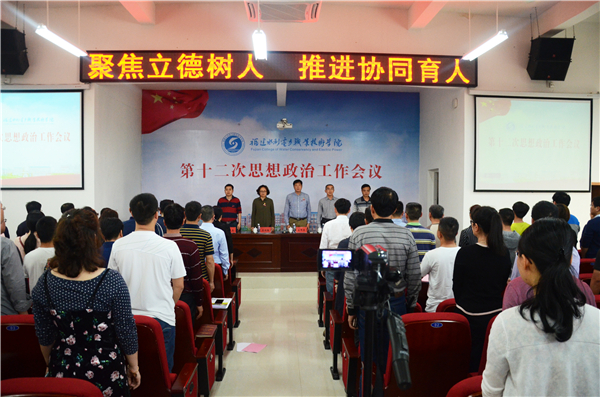 为深入学习贯彻习近平新时代中国特色社会主义思想和党的十九大精神,全面贯彻落实全国全省高校思想政治工作座谈会精神,进一步加强和改进新形势下学院思想政治工作,4月3日下午,学院第十二次思想政治工作会议在学术报告厅胜利召开。全体教职工参加会议,会议由党委副书记、院长杨元挺主持。
