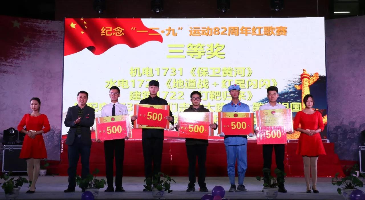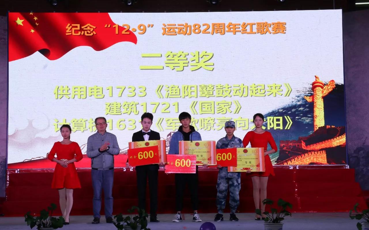 12月8日晚,由学院团委主办的以“不负韶华,筑梦中国”为主题的纪念“一二·九”运动82周年红歌合唱比赛在综合楼舞台顺利举行。学院党委副书记黄瑞梅,党委委员、副院长池长全、杨武盖,学工处(团委)、各系主任、党团总支相关负责人出席了本次比赛。