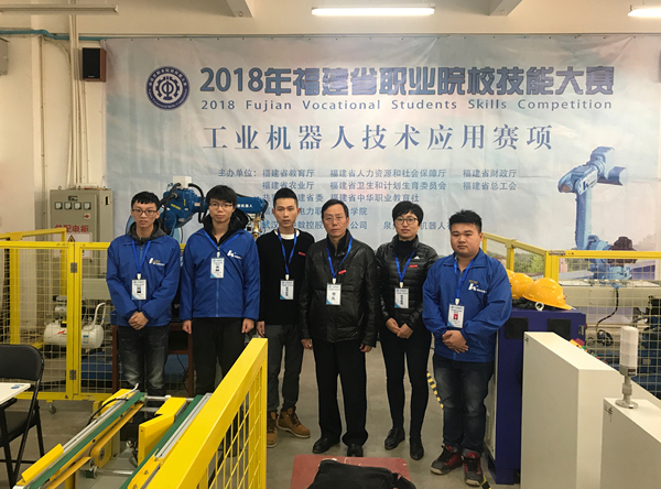 12月13日至14日,2018年福建省职业院校技能大赛(高职组)“工业机器人技术应用”项目在我院举行,来自全省17所院校的51名选手参加了该项竞赛。经过2天的激烈角逐,我院机电系智控1531班章文顺、苏世志、吴敏敏三位同学在罗钶、李津两位老师的精心指导下喜获团体第一名。