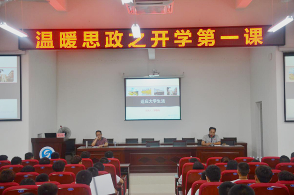 9月12日上午,学院举办“温暖思政之开学第一课”活动。学院党委书记庄伟廉、院长杨元挺、副院长黄瑞梅、纪委书记邹雄伟及各系党政负责人贴近学生,分场次为2017级新生讲授了以“适应大学生活”为主题的“思政第一课”。各系团总支负责人、2017级专兼职辅导员、马克思主义学院全体教师以及2017级2000余名新生认真聆听了课程。