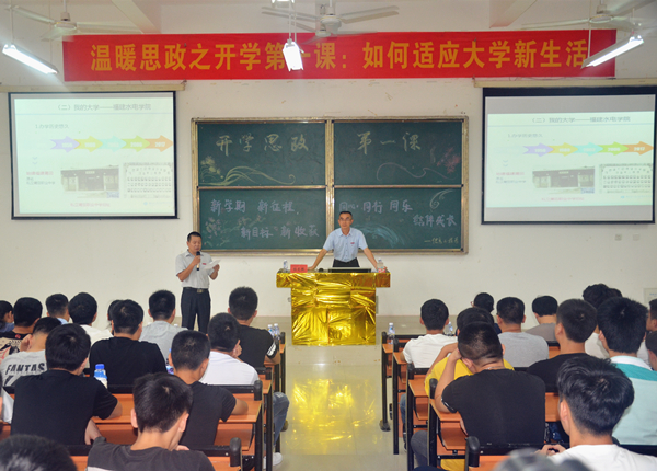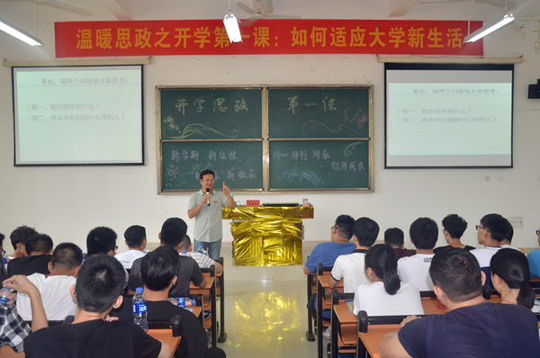 课堂上,学院各党委委员向新生介绍了我院悠久的办学历史、良好的校园文化和当前发展现状,帮助新生们更好地认识水院。同时,通过分享自身大学经历,引用生动的案例,深入浅出地讲述了什么是大学,以及新生初入大学后面临的困难和变化,帮助新生认识大学、学会学习、学会做人,更好地融入大学生活,迈向人生新阶段。现场气氛时而严肃沉思,时而激动振奋,讲解过程充满趣味性,讲台上下互动良好,同学们听得津津有味,轻松又不失严谨。