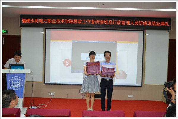 同济大学五天的学习圆满落下帷幕。结业典礼上,学院党工部部长代表全体学员致感恩辞,思政组、行政管理组、教研组三名组长分别把几天来针对问题设计的解决方案作了汇报,同济大学职业技术教育学院沪西培训部主任用“感恩、同行、祝福”为全体学员送上祝福,并为全体学员颁发结业证书,同时对获得头脑风暴大讨论中获胜两个小组进行了颁奖。