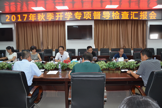 8月31日上午,以省教育厅基础教育处副处级干部肖龙井为组长的2017年秋季开学专项督导检查组一行5人到我院检查指导工作。学院党委书记庄伟廉、院长杨元挺、副院长李建平,学院各部门负责人、各系党政主要负责人参加汇报会。