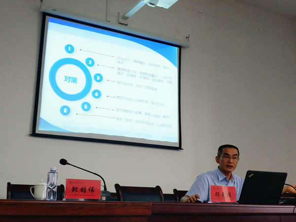 本次教职工大会作为“开学第一课”,打破了以往的会议议程模式,从教师的思想政治和基本修为方面,结合传达上级会议精神,尤其是全国全省思政工作会议精神,开篇引导全体教职工如何培养学生、培养怎样的学生。杨元挺院长首先作了一场题为《教师的修为》的专题讲座,从职业教育课程体系、素质(素养)教育体系、用心教学、读书(学习、进修)等四个方面详细阐述了教师应有的修为和教育观念在教育活动中重要的引领和指导作用。杨院长他结合自身教学经验和实例,运用启发式的提问引导教师们积极思考,对如何作好一名职业院校教师提出了宝贵建议,教师们深受其益。