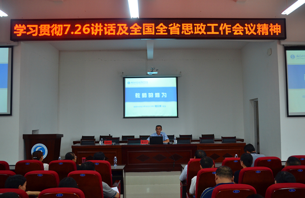 9月5日下午,学院召开全体教职工大会,学习传达习近平总书记7.26重要讲话精神、全国全省思政工作会议精神及十届三次全会精神。学院党委书记庄伟廉、院长杨元挺出席会议并作重要讲话。全院教职工参加了会议,会议由纪委书记邹雄伟主持。