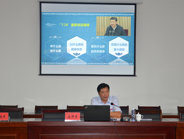 庄伟廉书记向全体教职工传达了习近平总书记“7.26”重要讲话精神、全国全省高校思想政治工作会议精神、福建省委十届三次全会及全省教育工作会议精神。结合习近平总书记“7.26”重要讲话,庄书记深刻详述了我们党要明确宣示举什么旗、走什么路、以什么样的精神状态、担负什么样的历史使命、实现什么样的奋斗目标。