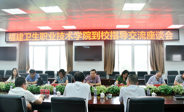 6月14日,福建卫生职业技术学院书记曾武祈、纪委书记李美华一行8人到我院参观交流。学院党委书记庄伟廉、院长杨元挺、纪委书记邹雄伟及相关部门负责同志一同参加了座谈。