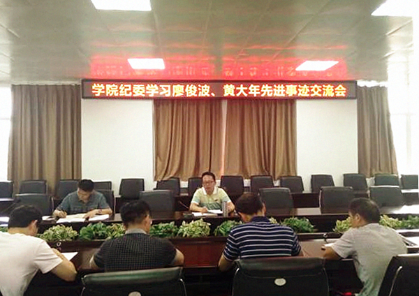 6月22日下午,学院纪委在北教一第五会议室召开学习廖俊波、黄大年先进事迹交流会,学院纪委书记邹雄伟出席会议并讲话,院纪委委员及各党总支纪检委员参加会议。
