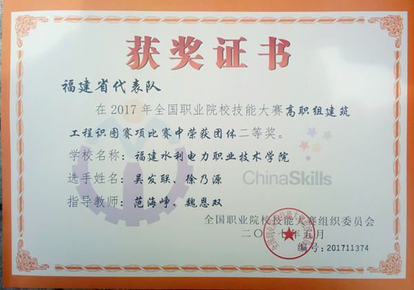 6月2日,2017年全国职业院校技能大赛高职组“建筑工程识图”赛项在浙江建设职业技术学院拉开帷幕。我院建筑工程系建筑1531班吴发联、造价1531班徐乃源两位同学沉着应战,以扎实的理论基础、精湛的操作技能,喜获全国高职组“建筑工程识图”赛项团体二等奖的佳绩。