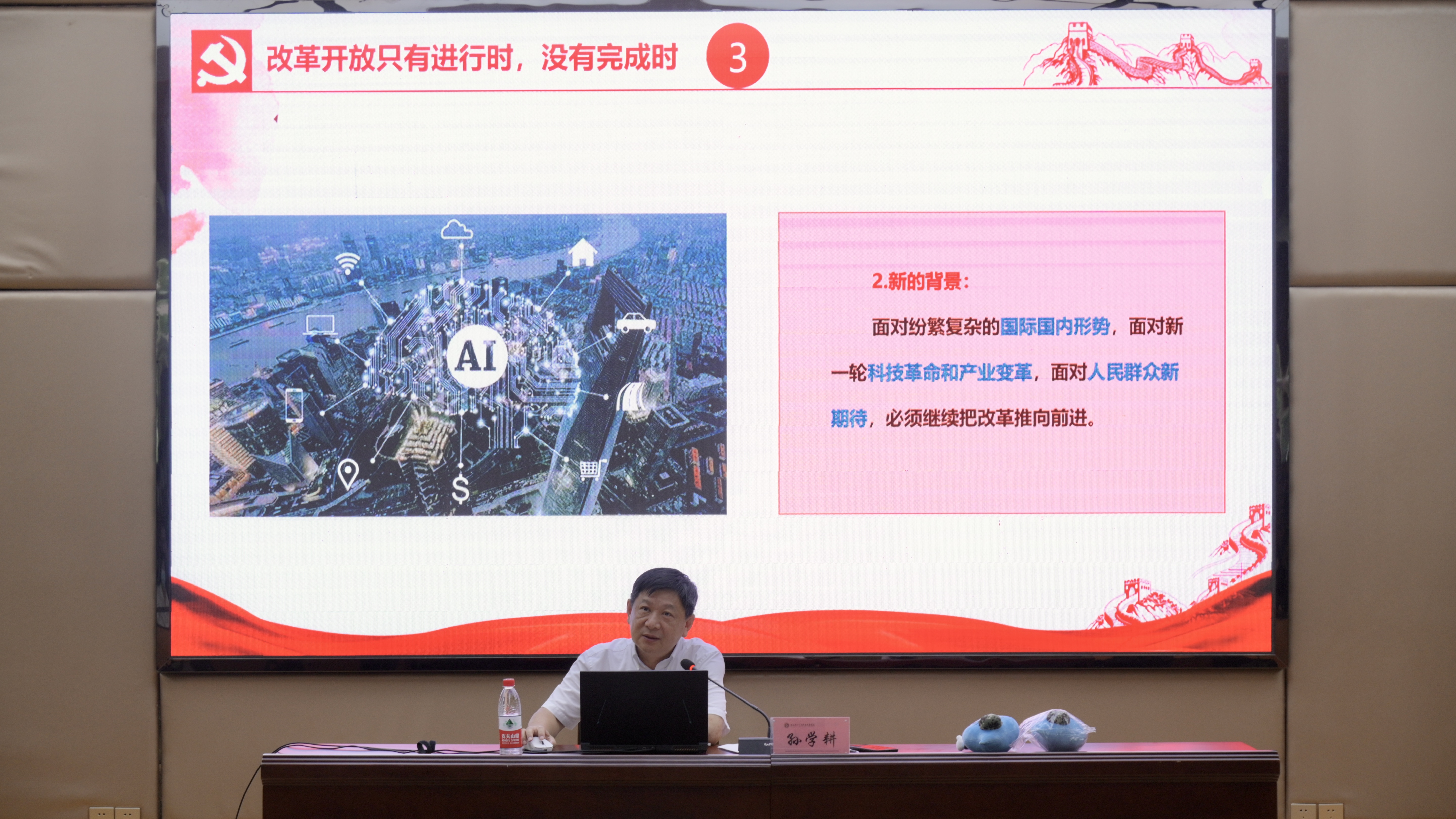 学校领导围绕深刻理解党的二十届三中全会的基本情况及新时代全面深化改革的重大成果、深入学习领会习近平总书记在党的二十届三中全会上的重要讲话精神、全面准确理解《决定》提出的进一步全面深化改革重大举措、精准把握省委十一届六次全会精神等方面,系统阐释全面深入领会党的二十届三中全会精神的重要性和必要性,深刻领会和把握进一步全面深化改革的主题、重大原则和重大举措等重大课题。