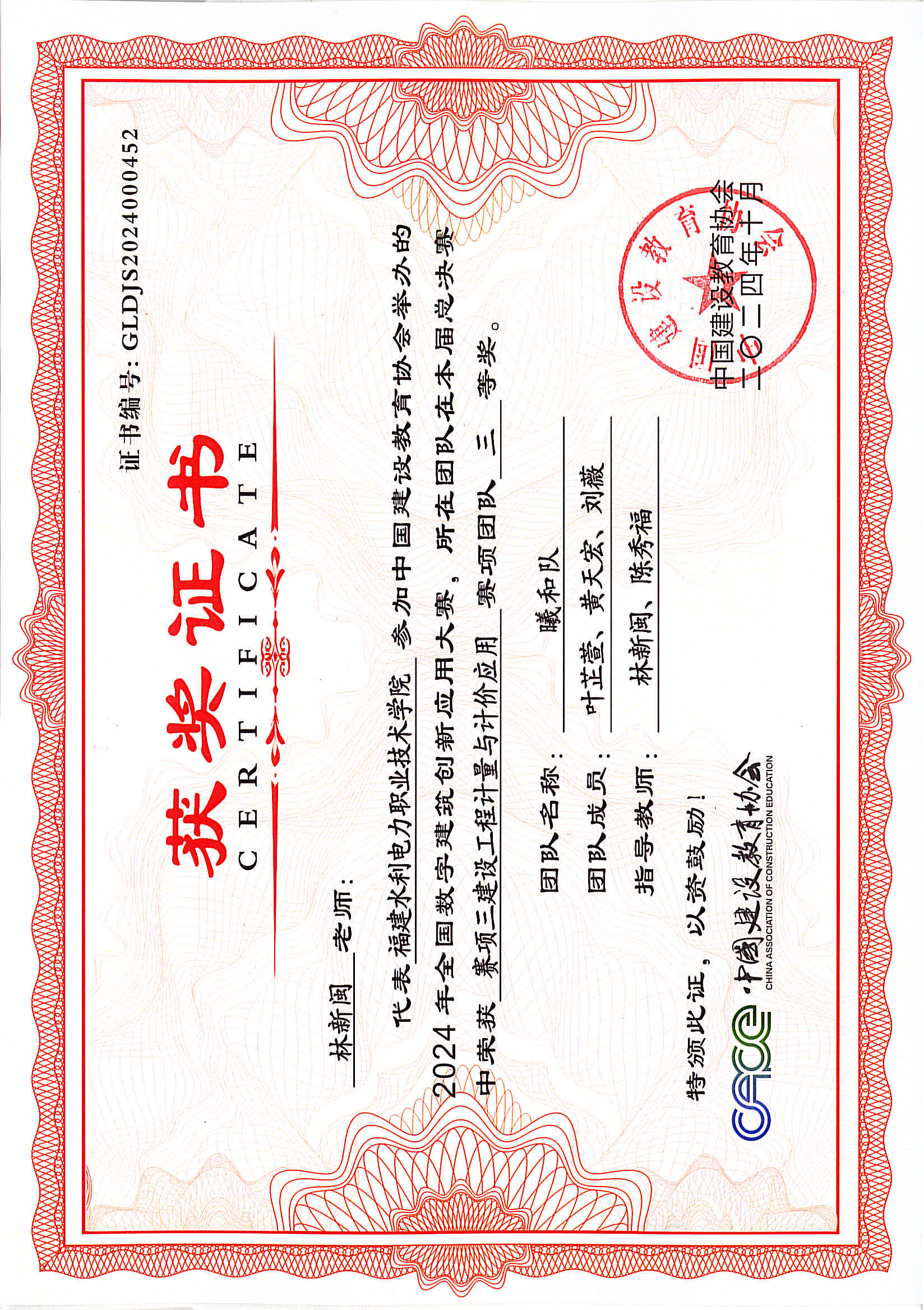 近日,由中国建设教育协会主办的2024全国数字建筑创新应用大赛结果出炉。我校建筑工程学院林新闽、陈秀福、郑芳芸组成高水平专业指导团队,精心指导的“开拓者队”、“曦和队”分获一等奖、三等奖。